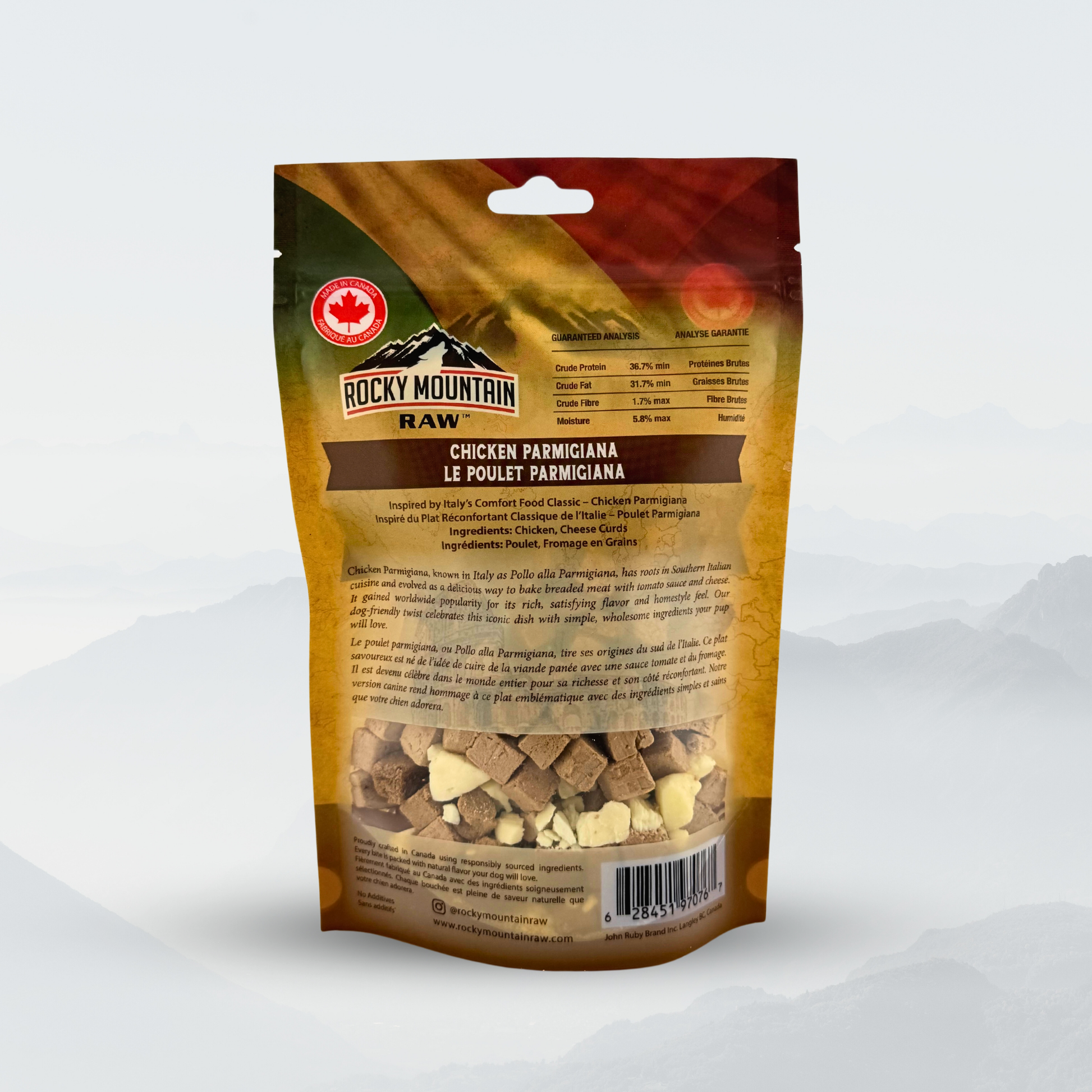 Give your dog a taste of Italy with our Chicken Parmigiana treats! Made with freeze-dried chicken and cheese curds, these gourmet snacks are protein-rich and savory. Ideal for training, snacking, or as a mealtime topper, these Italian-inspired dog treats combine flavor and nutrition in every bite.
